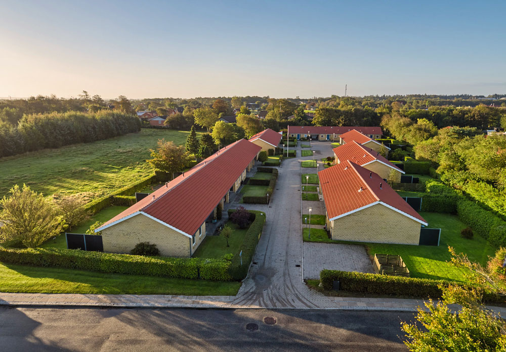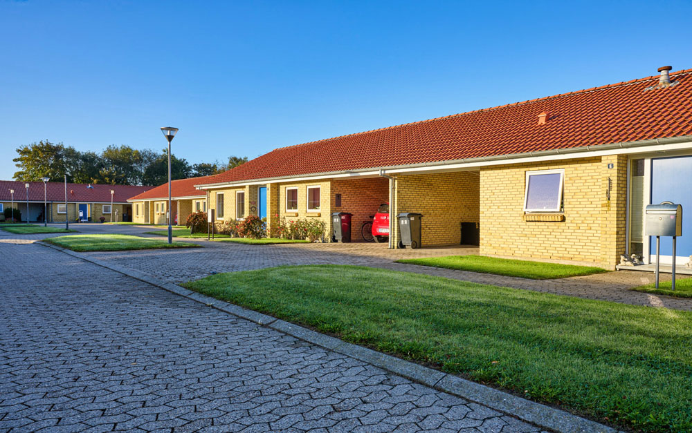 6 stk. af boligerne er 2 rums på 62 m² + carport og 9 stk. er 3 rums på 85 m² + carport.